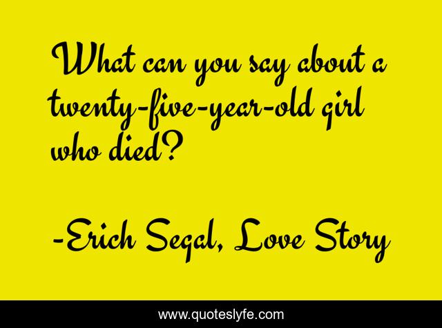 This page presents the quote "What can you say about a twenty-five-year-old girl who died?". Author of this quote is Erich Segal, Love Story. This quote is about loss, eulogy, first-lines, opening-lines,.