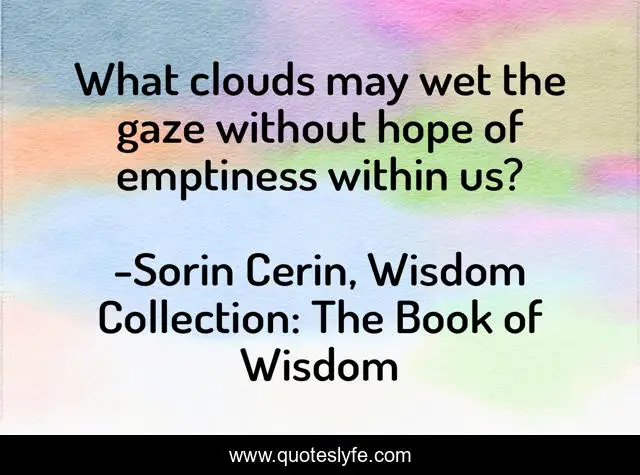 This page presents the quote "What clouds may wet the gaze without hope of emptiness within us?". Author of this quote is Sorin Cerin, Wisdom Collection: The Book of Wisdom. .