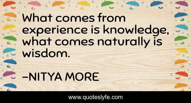 This page presents the quote "What comes from experience is knowledge, what comes naturally is wisdom.". Author of this quote is NITYA MORE. This quote is about knowledge, experience, wisdom,.