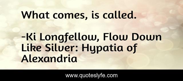 This page presents the quote "What comes, is called.". Author of this quote is Ki Longfellow, Flow Down Like Silver: Hypatia of Alexandria. This quote is about hypatia-of-alexandria, mathematics, christian-history, philosophy, spirituality,.