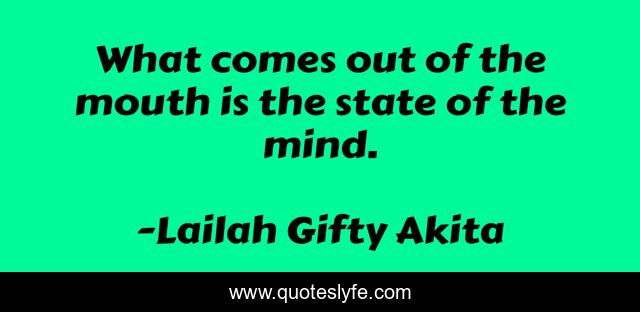 This page presents the quote "What comes out of the mouth is the state of the mind.". Author of this quote is Lailah Gifty Akita. This quote is about mind, philosophy, speech, life-lessons,.