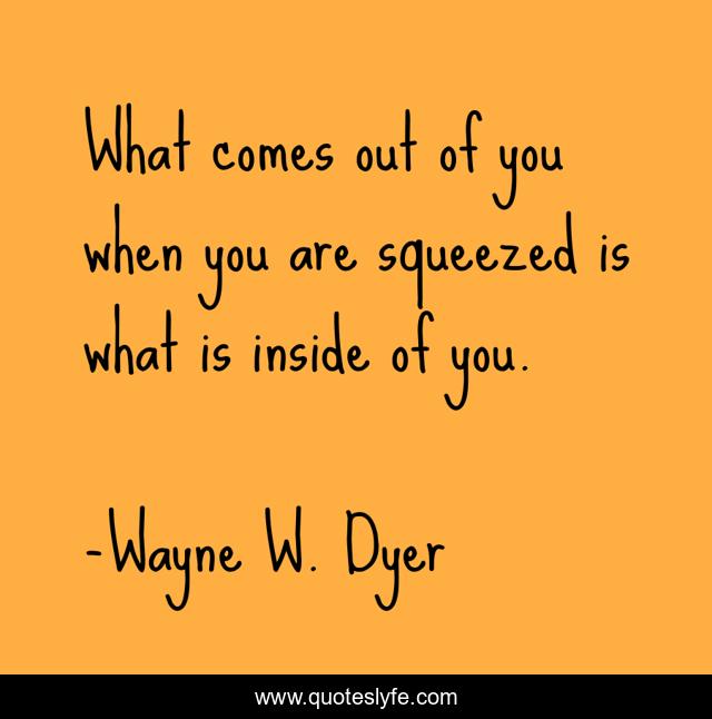 This page presents the quote "What comes out of you when you are squeezed is what is inside of you.". Author of this quote is Wayne W. Dyer. .