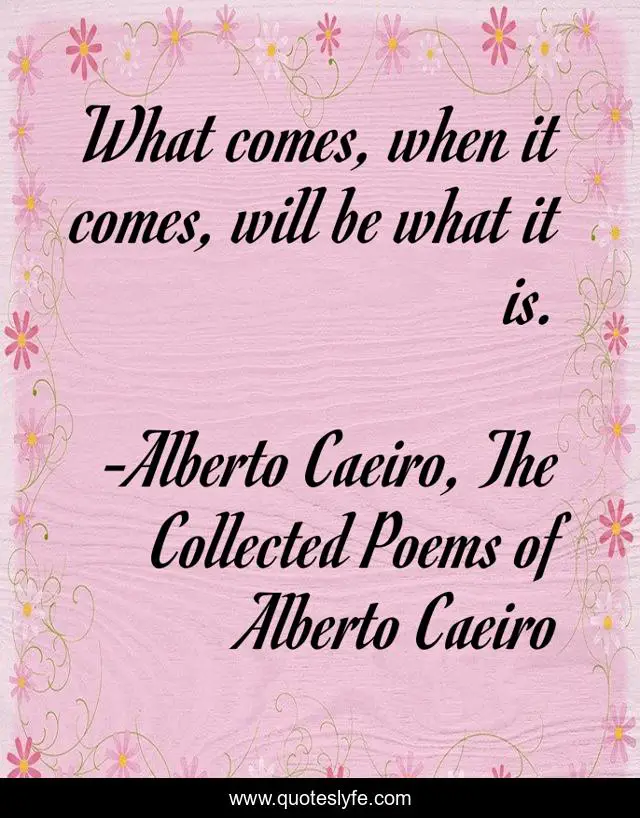 "Alberto Caeiro, The Collected Poems of Alberto Caeiro Quotes." Quoteslyfe.com, 2025. Fri. 05 Dec. 2025. <https://www.quoteslyfe.com/quote/What-comes-when-it-comes-will-be-9729>.