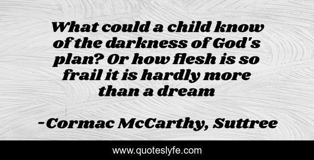 This page presents the quote "What could a child know of the darkness of God's plan? Or how flesh is so frail it is hardly more than a dream". Author of this quote is Cormac McCarthy, Suttree. .