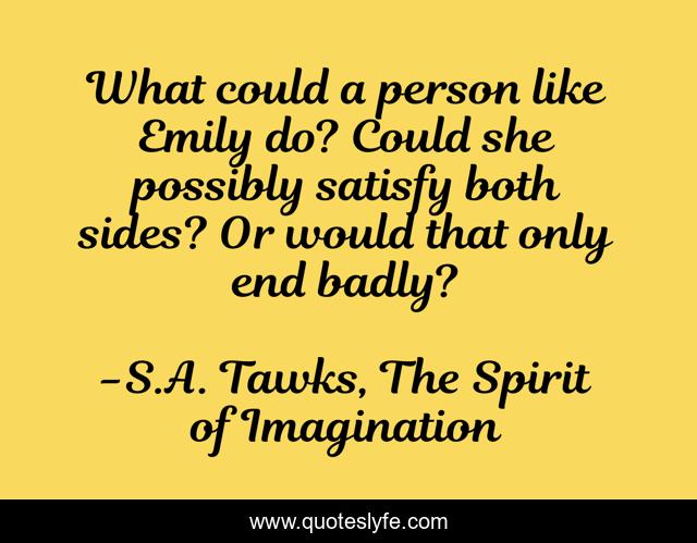 "S.A. Tawks, The Spirit of Imagination Quotes." Quoteslyfe.com, 2025. Fri. 05 Dec. 2025. <https://www.quoteslyfe.com/quote/What-could-a-person-like-Emily-do-126032>.