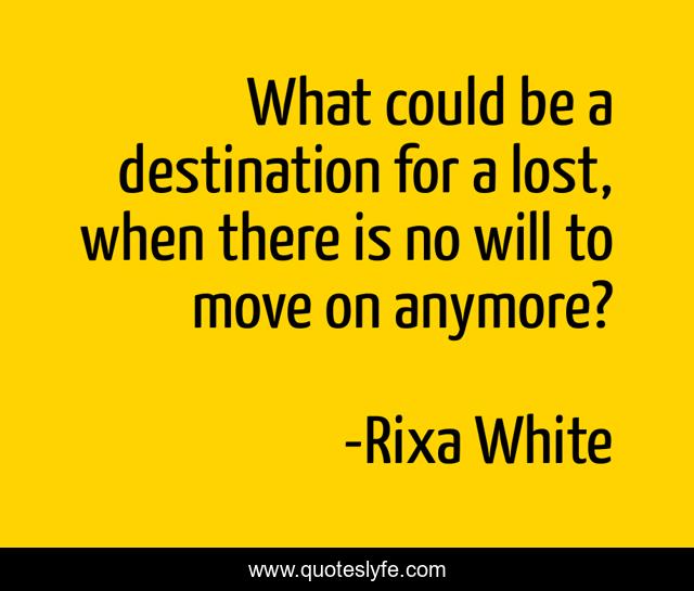 This page presents the quote "What could be a destination for a lost, when there is no will to move on anymore?". Author of this quote is Rixa White. This quote is about destination, move-on, lost, silentaria,.