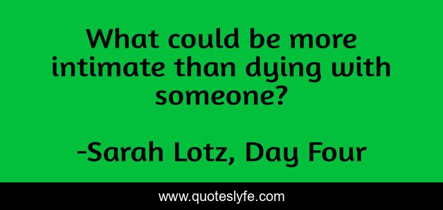 This page presents the quote "What could be more intimate than dying with someone?". Author of this quote is Sarah Lotz, Day Four. This quote is about dying, intimate,.