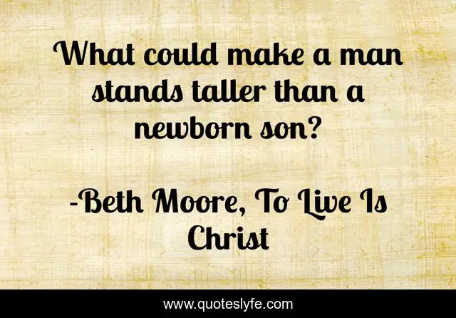 This page presents the quote "What could make a man stands taller than a newborn son?". Author of this quote is Beth Moore, To Live Is Christ. This quote is about gratitude, parenthood, discipleship, ministry,.