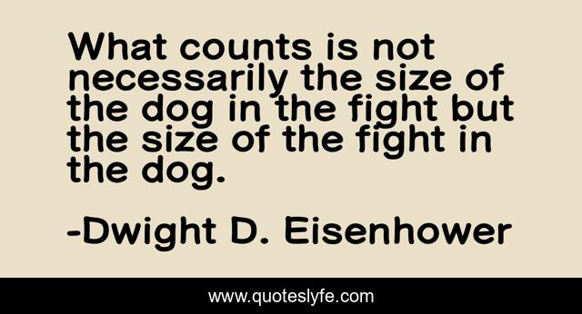 This page presents the quote "What counts is not necessarily the size of the dog in the fight but the size of the fight in the dog.". Author of this quote is Dwight D. Eisenhower. .