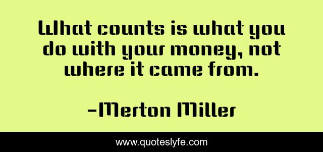 This page presents the quote "What counts is what you do with your money, not where it came from.". Author of this quote is Merton Miller. .
