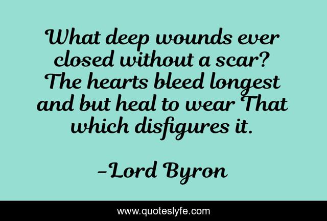 This page presents the quote "What deep wounds ever closed without a scar? The hearts bleed longest and but heal to wear That which disfigures it.". Author of this quote is Lord Byron. .