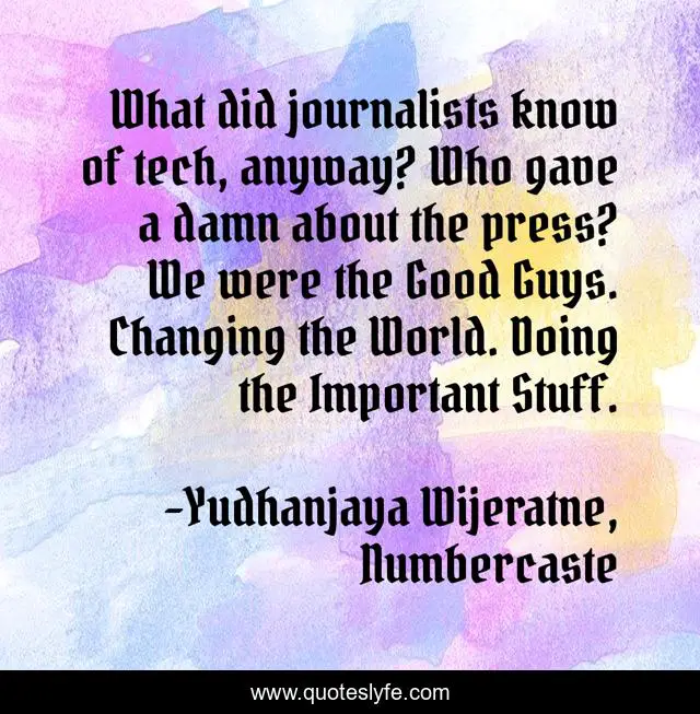 "Yudhanjaya Wijeratne, Numbercaste Quotes." Quoteslyfe.com, 2025. Fri. 05 Dec. 2025. <https://www.quoteslyfe.com/quote/What-did-journalists-know-of-tech-anyway-196542>.
