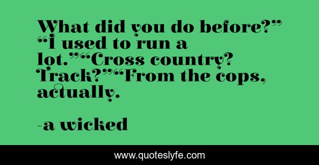 This page presents the quote "What did you do before?” “I used to run a lot.”“Cross country? Track?”“From the cops, actually.". Author of this quote is a wicked. This quote is about funny, quotes, cops, running, new, comedy,.