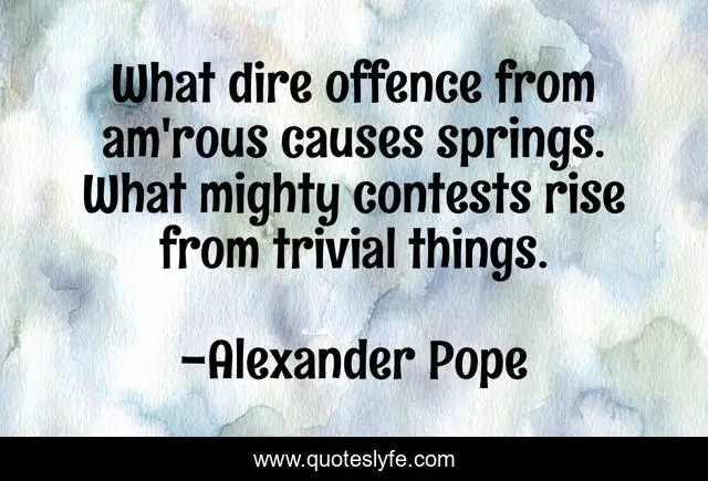 This page presents the quote "What dire offence from am'rous causes springs. What mighty contests rise from trivial things.". Author of this quote is Alexander Pope. This quote is about love, affection,.