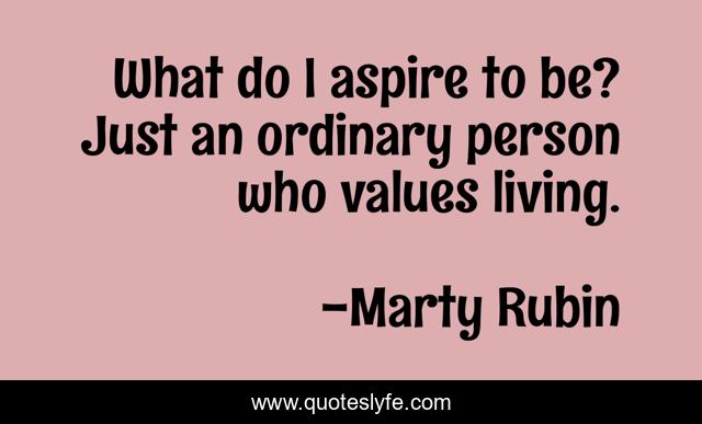 This page presents the quote "What do I aspire to be? Just an ordinary person who values living.". Author of this quote is Marty Rubin. This quote is about aspirations, living, goals, value, ambition,.