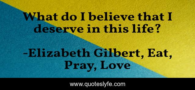 "Elizabeth Gilbert, Eat, Pray, Love Quotes." Quoteslyfe.com, 2025. Sat. 06 Dec. 2025. <https://www.quoteslyfe.com/quote/What-do-I-believe-that-I-deserve-110923>.