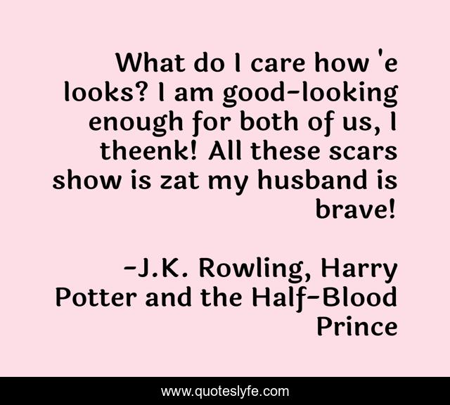 "J.K. Rowling, Harry Potter and the Half-Blood Prince Quotes." Quoteslyfe.com, 2025. Mon. 08 Dec. 2025. <https://www.quoteslyfe.com/quote/What-do-I-care-how-e-looks-756>.