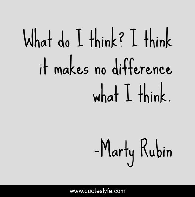 This page presents the quote "What do I think? I think it makes no difference what I think.". Author of this quote is Marty Rubin. This quote is about thinking, thought, events, reality,.