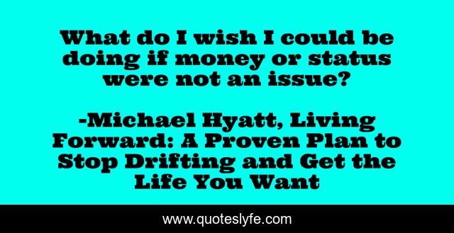 This page presents the quote "What do I wish I could be doing if money or status were not an issue?". Author of this quote is Michael Hyatt, Living Forward: A Proven Plan to Stop Drifting and Get the Life You Want. This quote is about personal-development, intentional-living, goals, dreams, life-plan,.