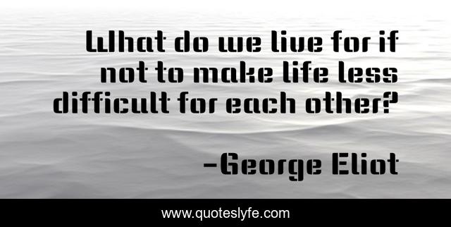 This page presents the quote "What do we live for if not to make life less difficult for each other?". Author of this quote is George Eliot. This quote is about helping, people,.