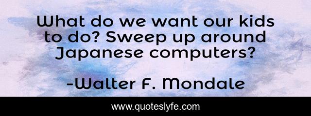 This page presents the quote "What do we want our kids to do? Sweep up around Japanese computers?". Author of this quote is Walter F. Mondale. This quote is about kids, up,.