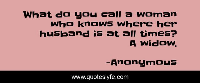 This page presents the quote "What do you call a woman who knows where her husband is at all times? A widow.". Author of this quote is Anonymous. This quote is about love, marriage, affection,.
