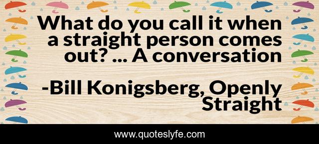 This page presents the quote "What do you call it when a straight person comes out? ... A conversation". Author of this quote is Bill Konigsberg, Openly Straight. .