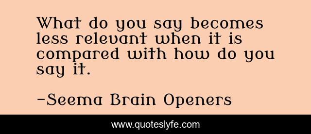 This page presents the quote "What do you say becomes less relevant when it is compared with how do you say it.". Author of this quote is Seema Brain Openers. This quote is about behaviour, attitude, words-of-wisdom,.