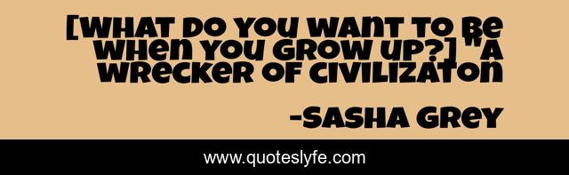 This page presents the quote "[What do you want to be when you grow up?] "A wrecker of civilizaton". Author of this quote is Sasha Grey. This quote is about aspirations, civilization,.