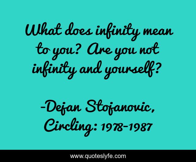 "Dejan Stojanovic, Circling: 1978-1987 Quotes." Quoteslyfe.com, 2025. Sun. 07 Dec. 2025. <https://www.quoteslyfe.com/quote/What-does-infinity-mean-to-you-Are-112305>.