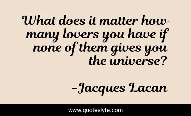 This page presents the quote "What does it matter how many lovers you have if none of them gives you the universe?". Author of this quote is Jacques Lacan. This quote is about universe, matter,.