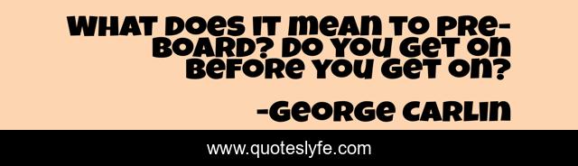 This page presents the quote "What does it mean to pre-board? Do you get on before you get on?". Author of this quote is George Carlin. This quote is about mean, before,.