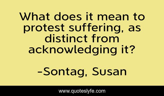 This page presents the quote "What does it mean to protest suffering, as distinct from acknowledging it?". Author of this quote is Sontag, Susan. This quote is about suffering, pain, humanitarianism,.