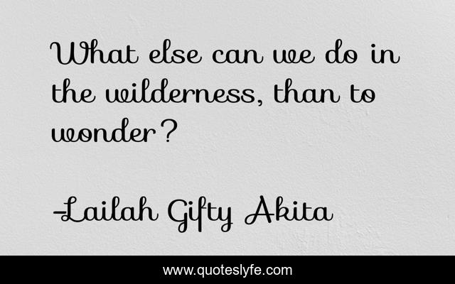 This page presents the quote "What else can we do in the wilderness, than to wonder?". Author of this quote is Lailah Gifty Akita. This quote is about wilderness, wonder,.