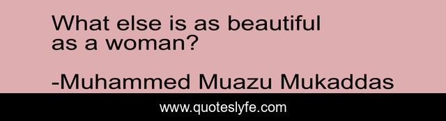 This page presents the quote "What else is as beautiful as a woman?". Author of this quote is Muhammed Muazu Mukaddas. This quote is about beauty-in-nature, woman, womanhood, beauty-of-life, women-and-men, women,.