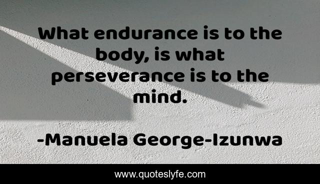 This page presents the quote "What endurance is to the body, is what perseverance is to the mind.". Author of this quote is Manuela George-Izunwa. This quote is about endurance, perseverance-perseverance,.