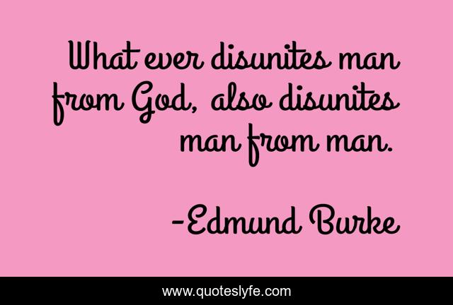 This page presents the quote "What ever disunites man from God, also disunites man from man.". Author of this quote is Edmund Burke. This quote is about also, ever, man,.