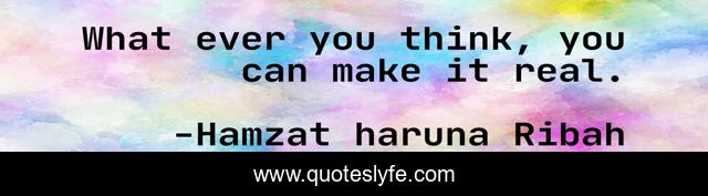 This page presents the quote "What ever you think, you can make it real.". Author of this quote is Hamzat haruna Ribah. This quote is about confidence, positive, motivational, reality, thought, optimistic, insprasional,.