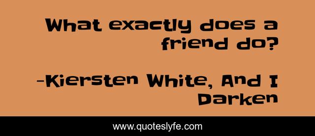 "Kiersten White, And I Darken Quotes." Quoteslyfe.com, 2025. Sat. 06 Dec. 2025. <https://www.quoteslyfe.com/quote/What-exactly-does-a-friend-do-50648>.