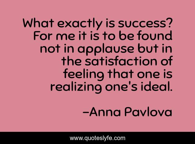 This page presents the quote "What exactly is success? For me it is to be found not in applause but in the satisfaction of feeling that one is realizing one's ideal.". Author of this quote is Anna Pavlova. .