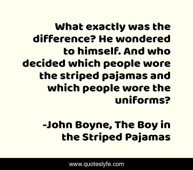 "John Boyne, The Boy in the Striped Pajamas Quotes." Quoteslyfe.com, 2025. Fri. 05 Dec. 2025. <https://www.quoteslyfe.com/quote/What-exactly-was-the-difference-He-wondered-99191>.