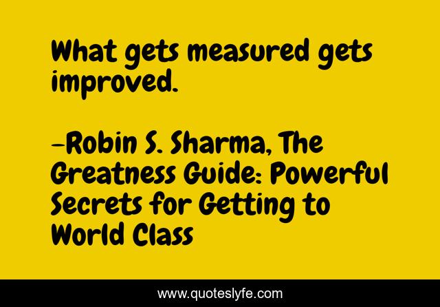 "Robin S. Sharma, The Greatness Guide: Powerful Secrets for Getting to World Class Quotes." Quoteslyfe.com, 2025. Sat. 06 Dec. 2025. <https://www.quoteslyfe.com/quote/What-gets-measured-gets-improved-237692>.