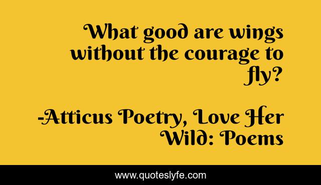 "Atticus Poetry, Love Her Wild: Poems Quotes." Quoteslyfe.com, 2025. Sat. 06 Dec. 2025. <https://www.quoteslyfe.com/quote/What-good-are-wings-without-the-courage-22660>.