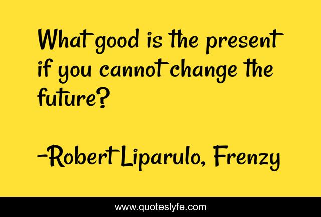 This page presents the quote "What good is the present if you cannot change the future?". Author of this quote is Robert Liparulo, Frenzy. This quote is about future, change, create-your-world,.
