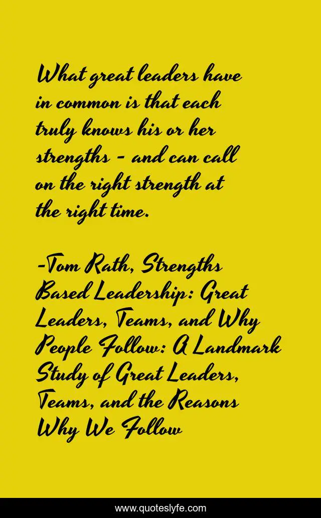 "Tom Rath, Strengths Based Leadership: Great Leaders, Teams, and Why People Follow: A Landmark Study of Great Leaders, Teams, and the Reasons Why We Follow Quotes." Quoteslyfe.com, 2025. Fri. 05 Dec. 2025. <https://www.quoteslyfe.com/quote/What-great-leaders-have-in-common-is-129017>.