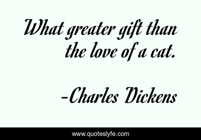 This page presents the quote "What greater gift than the love of a cat.". Author of this quote is Charles Dickens. This quote is about gifts, cats, love, affection,.