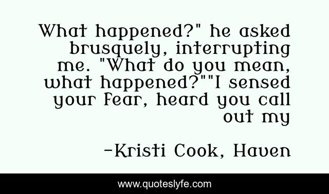 "Kristi Cook, Haven Quotes." Quoteslyfe.com, 2025. Fri. 05 Dec. 2025. <https://www.quoteslyfe.com/quote/What-happened-he-asked-brusquely-interrupting-me-41173>.