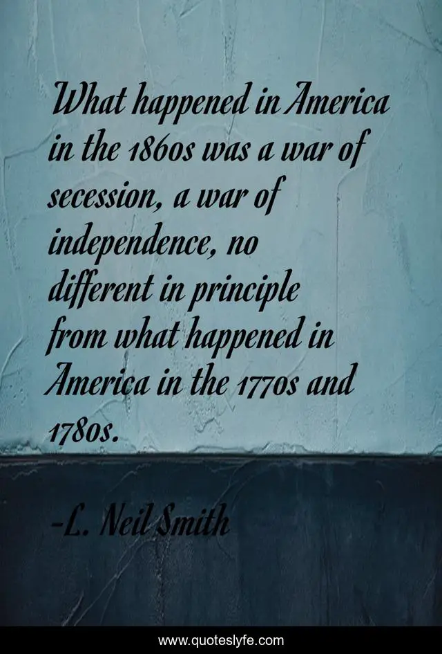 This page presents the quote "What happened in America in the 1860s was a war of secession, a war of independence, no different in principle from what happened in America in the 1770s and 1780s.". Author of this quote is L. Neil Smith. This quote is about different, america, war,.