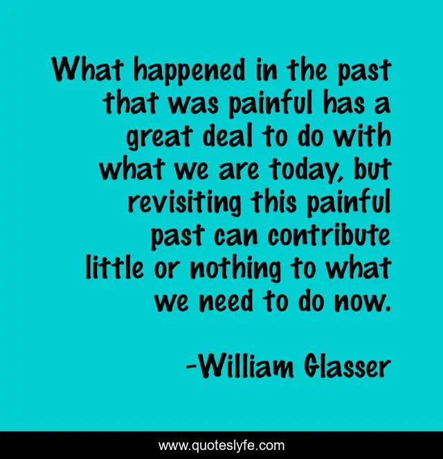 This page presents the quote "What happened in the past that was painful has a great deal to do with what we are today, but revisiting this painful past can contribute little or nothing to what we need to do now.". Author of this quote is William Glasser. This quote is about painful, today, in-the-past,.