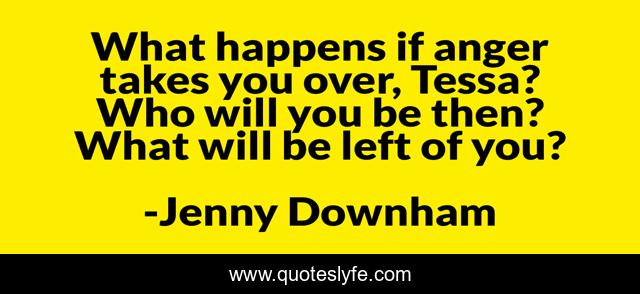 This page presents the quote "What happens if anger takes you over, Tessa? Who will you be then? What will be left of you?". Author of this quote is Jenny Downham. This quote is about anger, anger-management,.